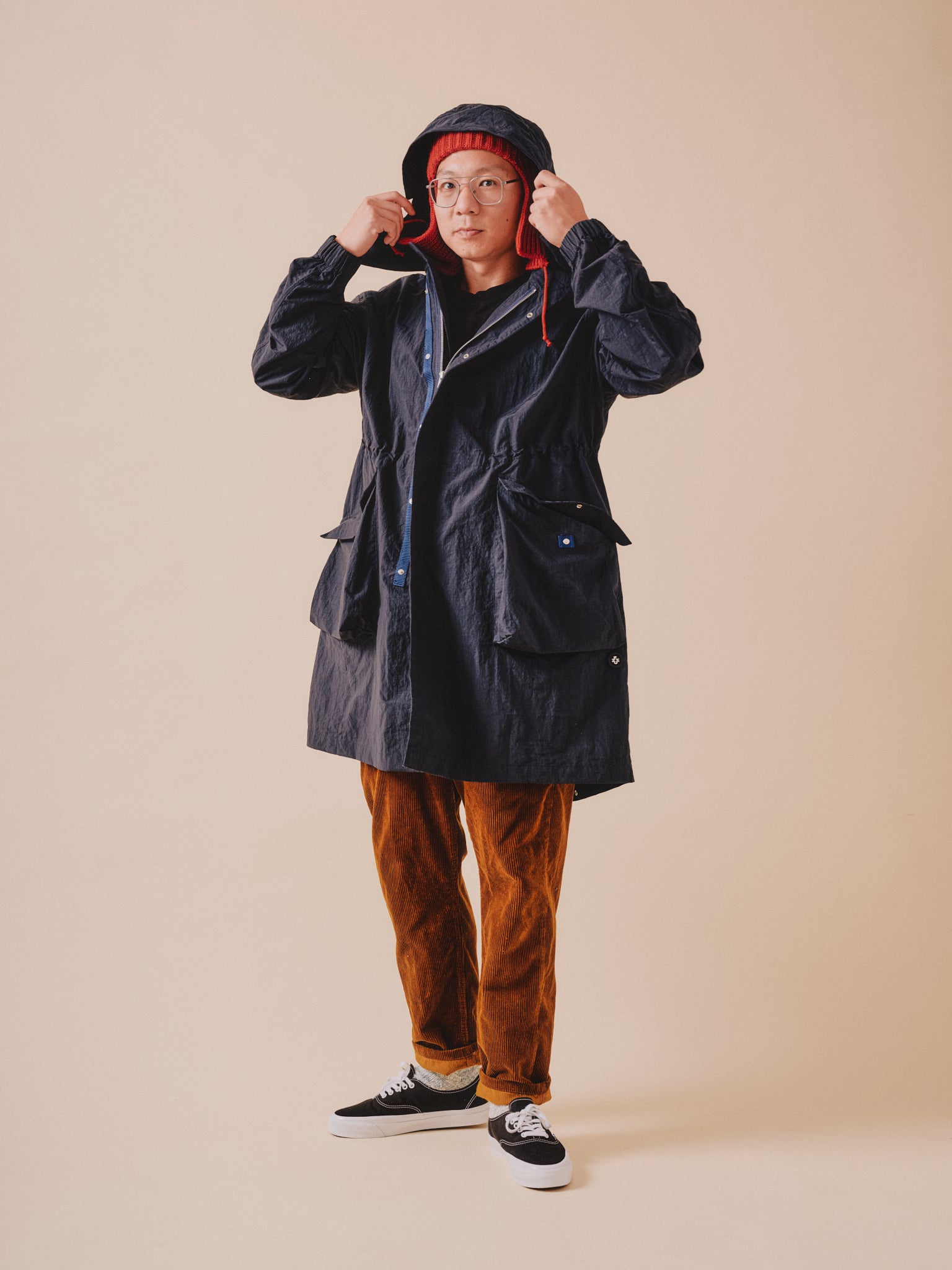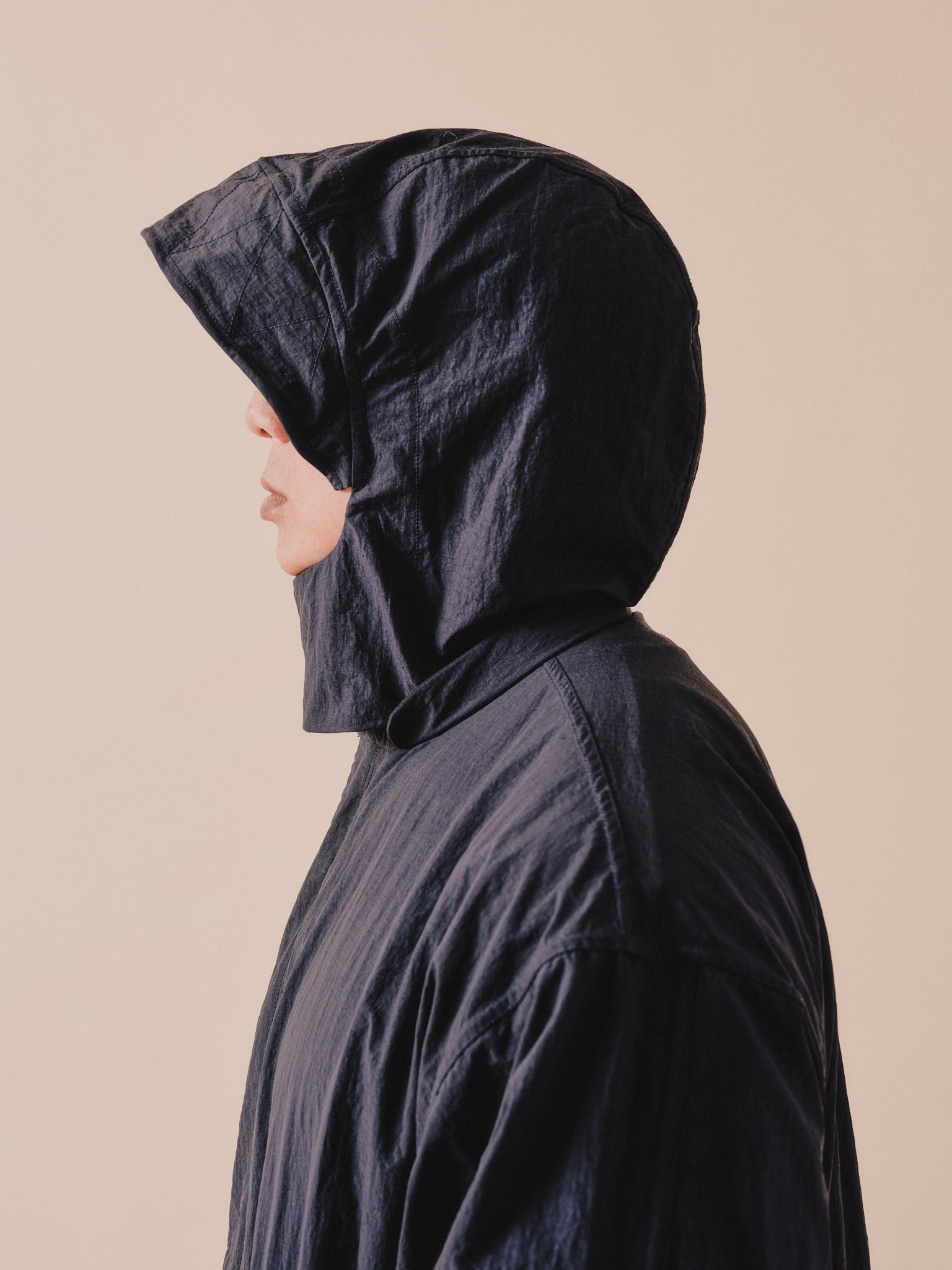 The Fuzz Bailey Parka is our most versatile piece to date, crafted from lightweight yet durable nylon micro ripstop fabric from Japan. This piece can be worn all year round as a water repellent outer layer, either on its own in Summer or layered up with knits or liner jackets in Autumn and Winter. It features a removable wired hood and stand up collar to offer styling options. It also has 3 length settings which can be adjusted with 2 rows of poppers to the hem. The Bailey offers multiple looks in one lightweight piece.